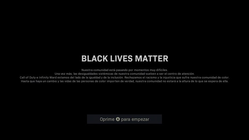 No importa en qué modo juegues, siempre te aparecerá la pantalla de carga de Black Lives Matter . La declaración deja claro que el racismo sigue siendo un problema grave en la sociedad actual y que Activision e Infinity Ward defienden la igualdad y la inclusión. Quieren proporcionar recursos adicionales para supervisar e identificar contenido racista y bloquear a los jugadores más rápido y con más frecuencia si utilizan nombres de jugador racistas o resultan inconvenientes de alguna otra manera.