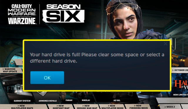 Con la última gran actualización de la temporada 6, parece que ha llegado el momento en el que Modern Warfare ya no cabe ni siquiera en un SSD de 250 GB. Como informó Battle(non)sense en Twitter, el juego no se puede actualizar en un SSD de este tipo por falta de espacio: